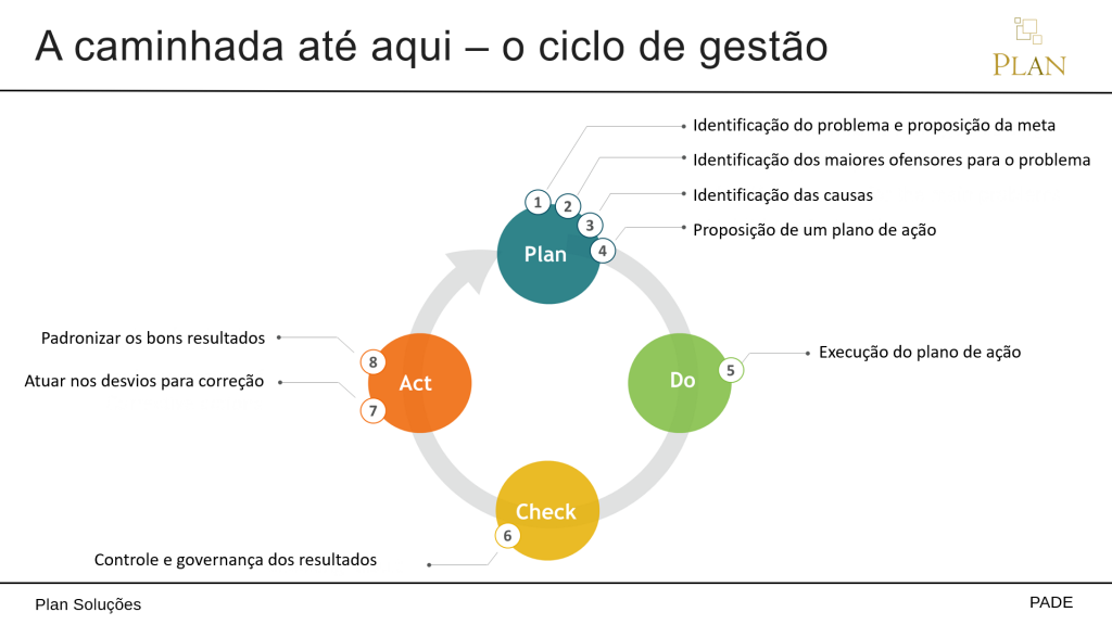 Foi apresentado o ciclo PDCA demonstrando a evolução do programa.