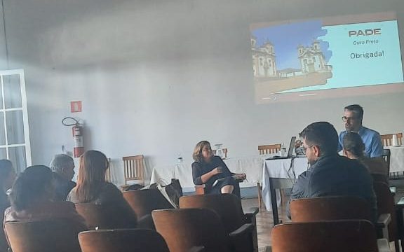 Em relação as ações do PADE, foram apresentadas as metodologias que embasam o Plano, quais são os eixos de trabalho, principais resultados e propostas de governança, focando na importância de fortalecer a governança em rede e estendeu para os representantes da sociedade civil o convite para a participação do chamamento público para a composição do CONDES (Conselho Municipal de Desenvolvimento Econômico e Sustentável de Ouro Preto) que é a instância que tem o papel de deliberar a captar recursos através do fundo.