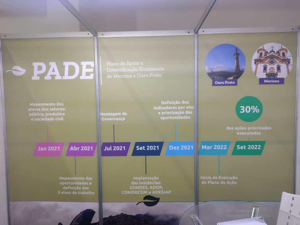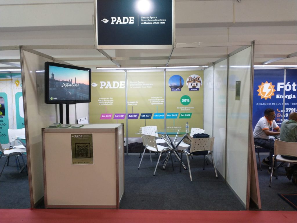 O Plano de Apoio à Diversificação Econômica de Mariana e Ouro Preto – PADE esteve presente na 2ª Semana de Desenvolvimento Econômico de Mariana que ocorreu de 28 a 30 de setembro no Centro de Convenções Alphonsus de Guimarães em Mariana.